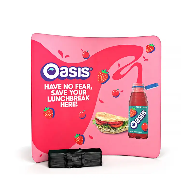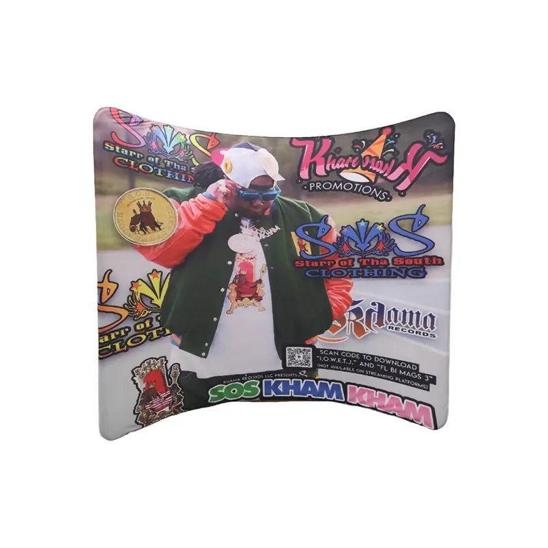 Curve-bakgrundsramen är gjord av en stark men ändå lätt ram av aluminiumlegering och högupplöst färgsublimeringstryckt stretchstickat tyg, detta bågböjda stativ erbjuder både hållbarhet och förstklassiga bilder. Tyget har ljusa, reptåliga färger som ger liv åt intrikata mönster med stor klarhet. Dess böjda struktur skapar en sömlös, skrynkelfri display, och den verktygsfria monteringen låter dig skapa en professionell bakgrund på bara några minuter.