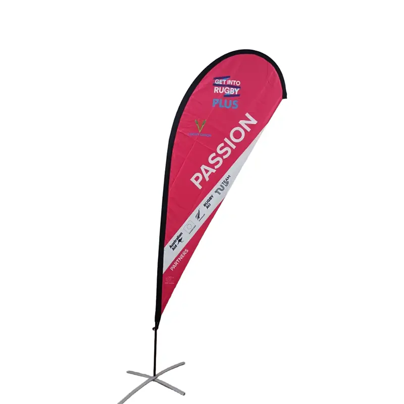 Teardrop beachflaggor används huvudsakligen i reklamevenemang utomhus och vissa reklamsidor, såsom produktvisningar i köpcentra, reklamuppsättningar i stormarknader, reklamskyltar för hotell och kontorsbyggnader, visning av vissa skolaktiviteter, identifiering av deltagare vid sportevenemang och reklamskyltar för sponsorer.